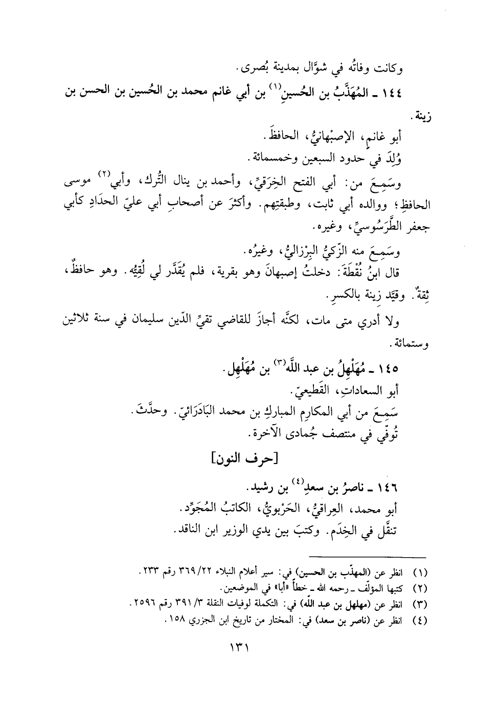 [1] انظر عن (المهذّب بن الحسين) في: سير أعلام النبلاء 22/ 369 رقم 233.