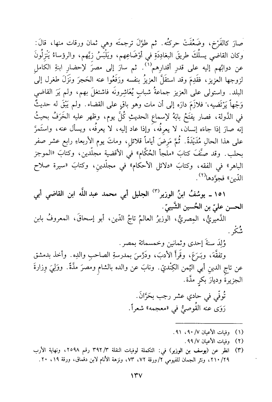 [3] انظر عن (يوسف بن الوزير) في: التكملة لوفيات النقلة 3/ 392 رقم 2598، ونهاية الأرب 29/ 210، ونثر الجمان للفيومي 2/ ورقة 72، 73، ونزهة الأنام لابن دقماق، ورقة 19، 20.
