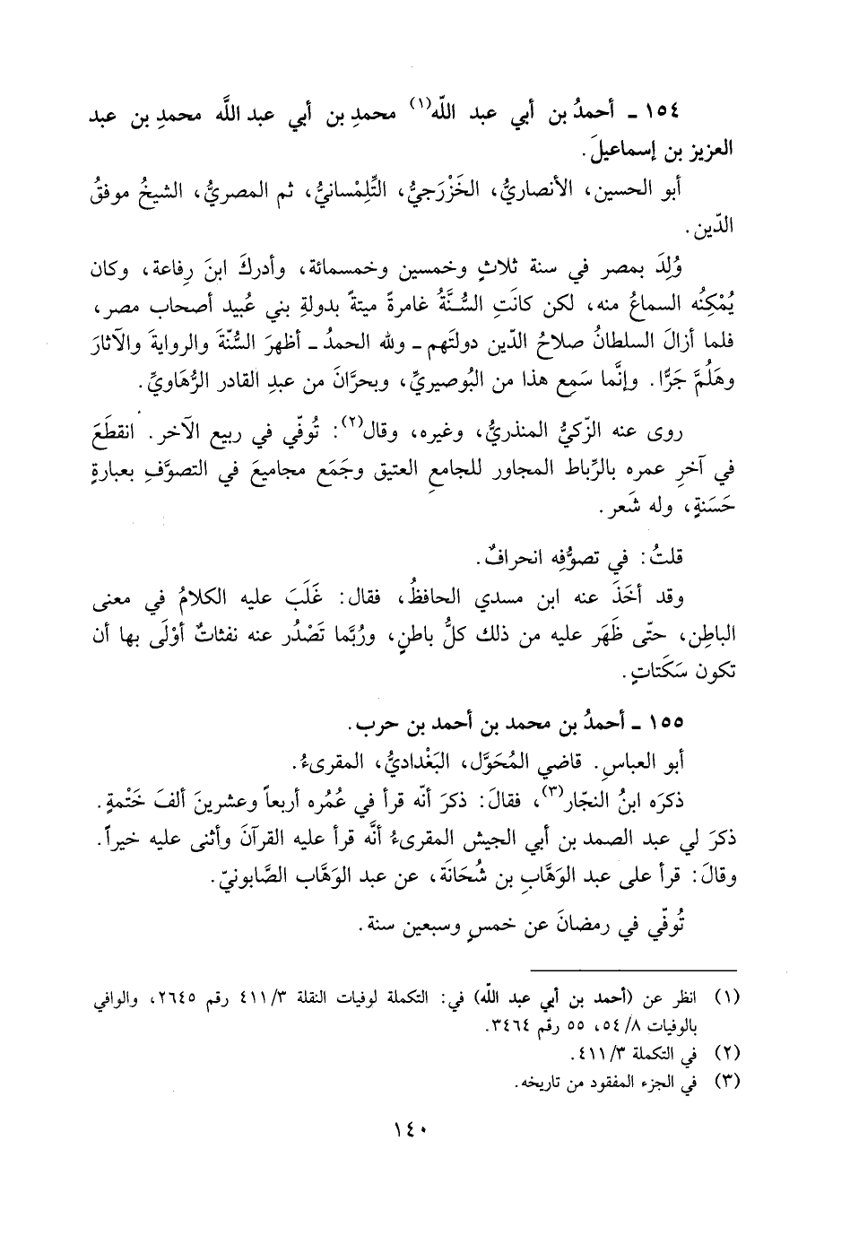 155- أَحْمَد بْن مُحَمَّد بْن أَحْمَد بْن حَرْب.