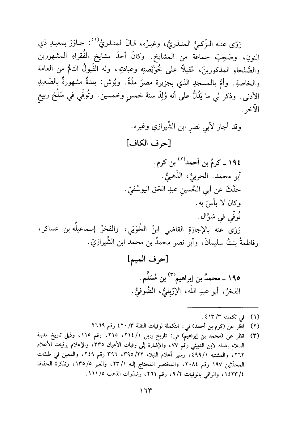 [2] انظر عن (كرم بن أحمد) في: التكملة لوفيات النقلة 3/ 420 رقم 2669.