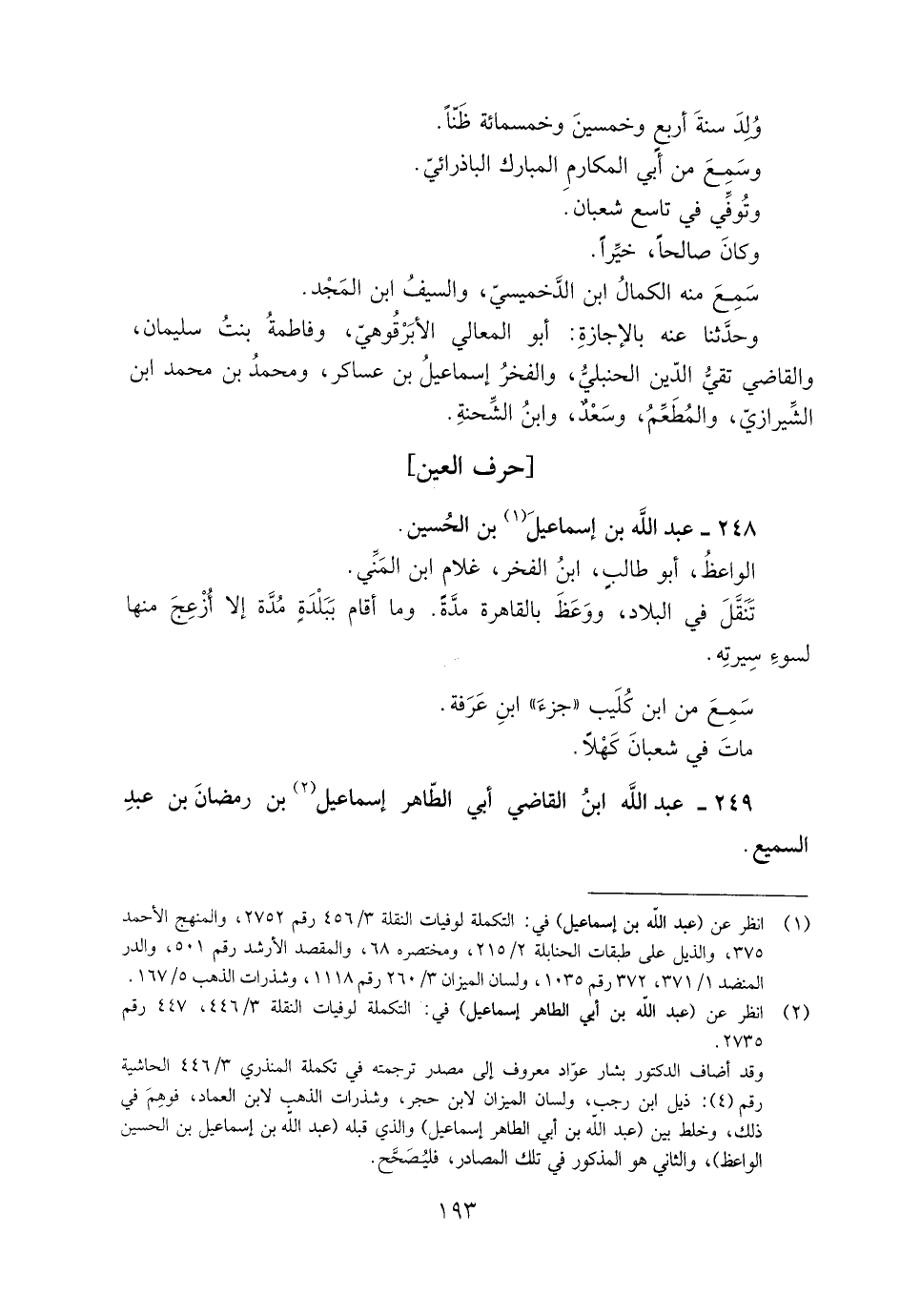 [1] انظر عن (عبد الله بن إسماعيل) في: التكملة لوفيات النقلة 3/ 456 رقم 2752، والمنهج الأحمد 375، والذيل على طبقات الحنابلة 2/ 215، ومختصره 68، والمقصد الأرشد رقم 501، والدر المنضد 1/ 371، 372 رقم 1035، ولسان الميزان 3/ 260 رقم 1118، وشذرات الذهب 5/ 167.