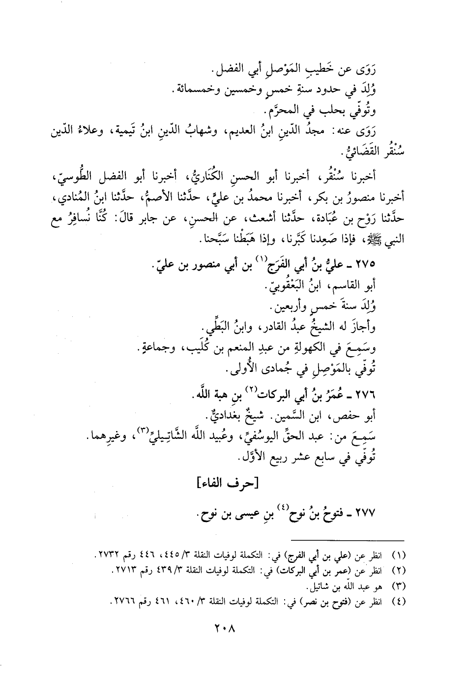 276- عُمَر بْن أَبِي البركات [2] بْن هِبة اللَّه.