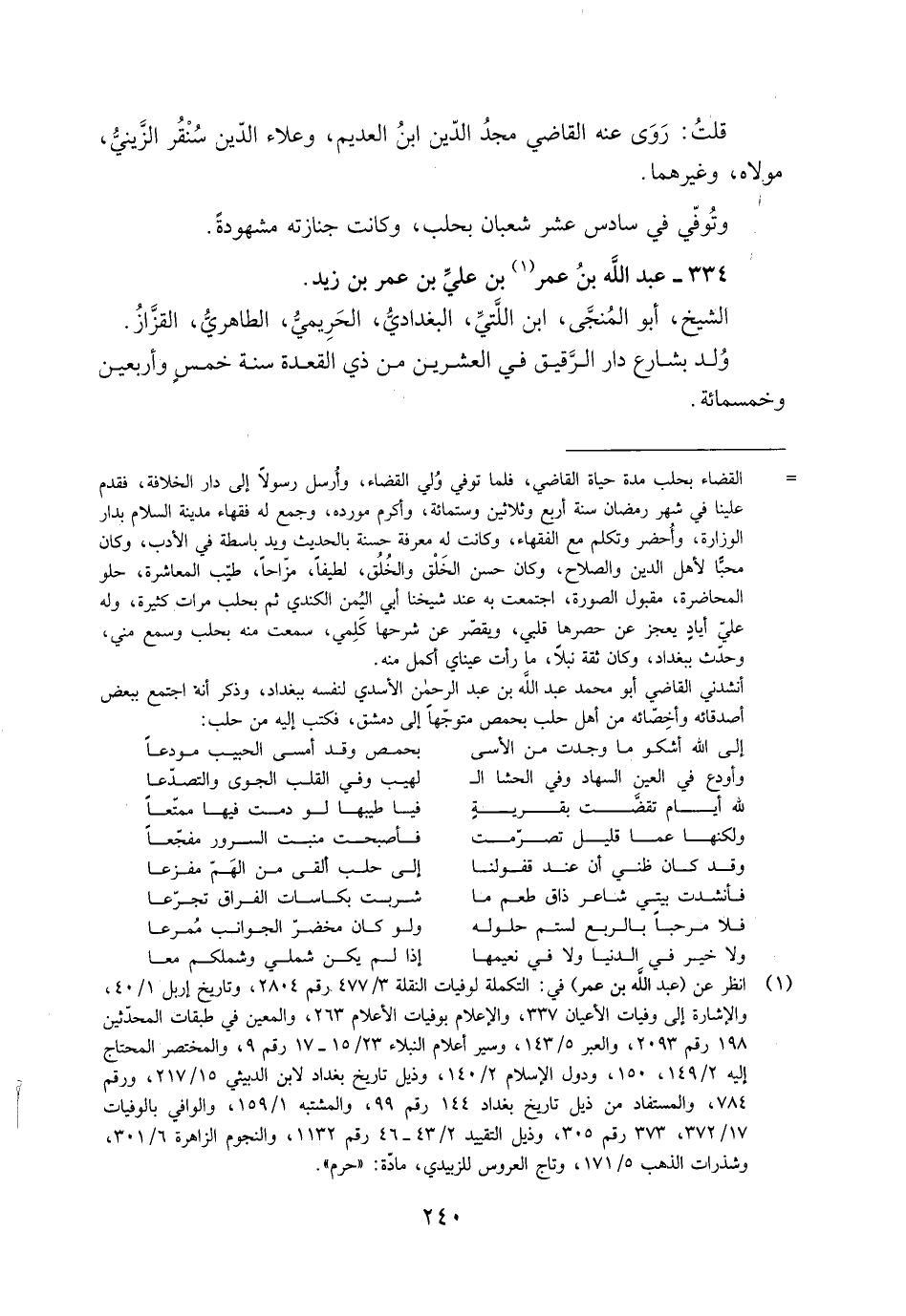 [1] انظر عن (عبد الله بن عمر) في: التكملة لوفيات النقلة 3/ 477 رقم 2804، وتاريخ إربل 1/ 40، والإشارة إلى وفيات الأعيان 337، والإعلام بوفيات الأعلام 263، والمعين في طبقات المحدّثين 198 رقم 2093، والعبر 5/ 143، وسير أعلام النبلاء 23/ 15- 17 رقم 9، والمختصر المحتاج إليه 2/ 149، 150، ودول الإسلام 2/ 140، وذيل تاريخ بغداد لابن الدبيثي 15/ 217، ورقم 784، والمستفاد من ذيل تاريخ بغداد 144 رقم 99، والمشتبه 1/ 159، والوافي بالوفيات 17/ 372، 373 رقم 305، وذيل التقييد 2/ 43- 46 رقم 1132، والنجوم الزاهرة 6/ 301، وشذرات الذهب 5/ 171، وتاج العروس للزبيدي، مادّة: «حرم» .