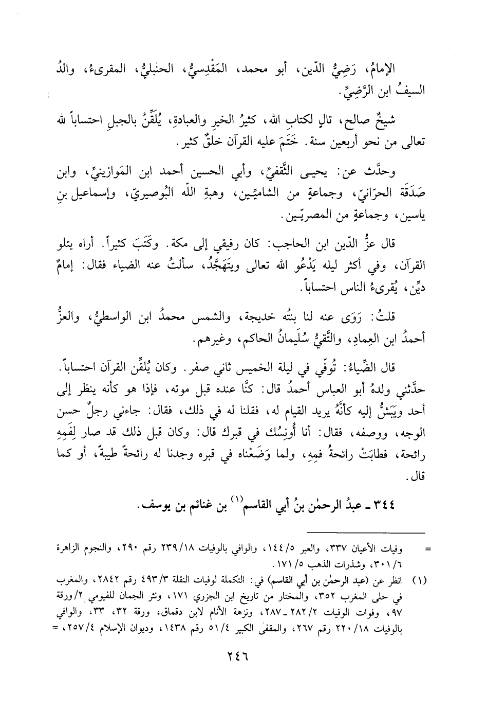 344- عَبْد الرَّحْمَن بْن أَبِي القاسم [1] بْن غنائم بْن يوسف.