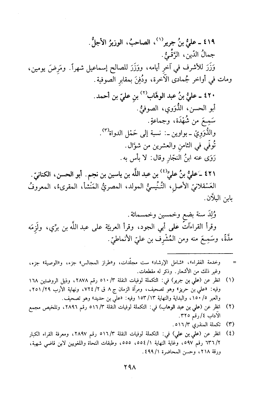 420- عَليّ بن عَبْد الوَهَّاب [2] بن عَليّ بن أَحْمَد.
