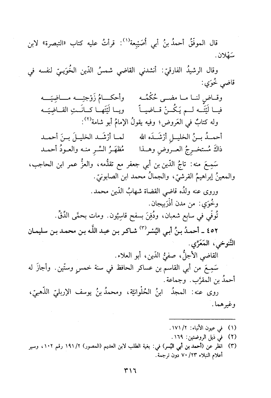 [3] انظر عن (أحمد بن أبي اليسر) في: بغية الطلب لابن العديم (المصور) 2/ 191 رقم 102، وسير أعلام النبلاء 23/ 70 دون ترجمة.