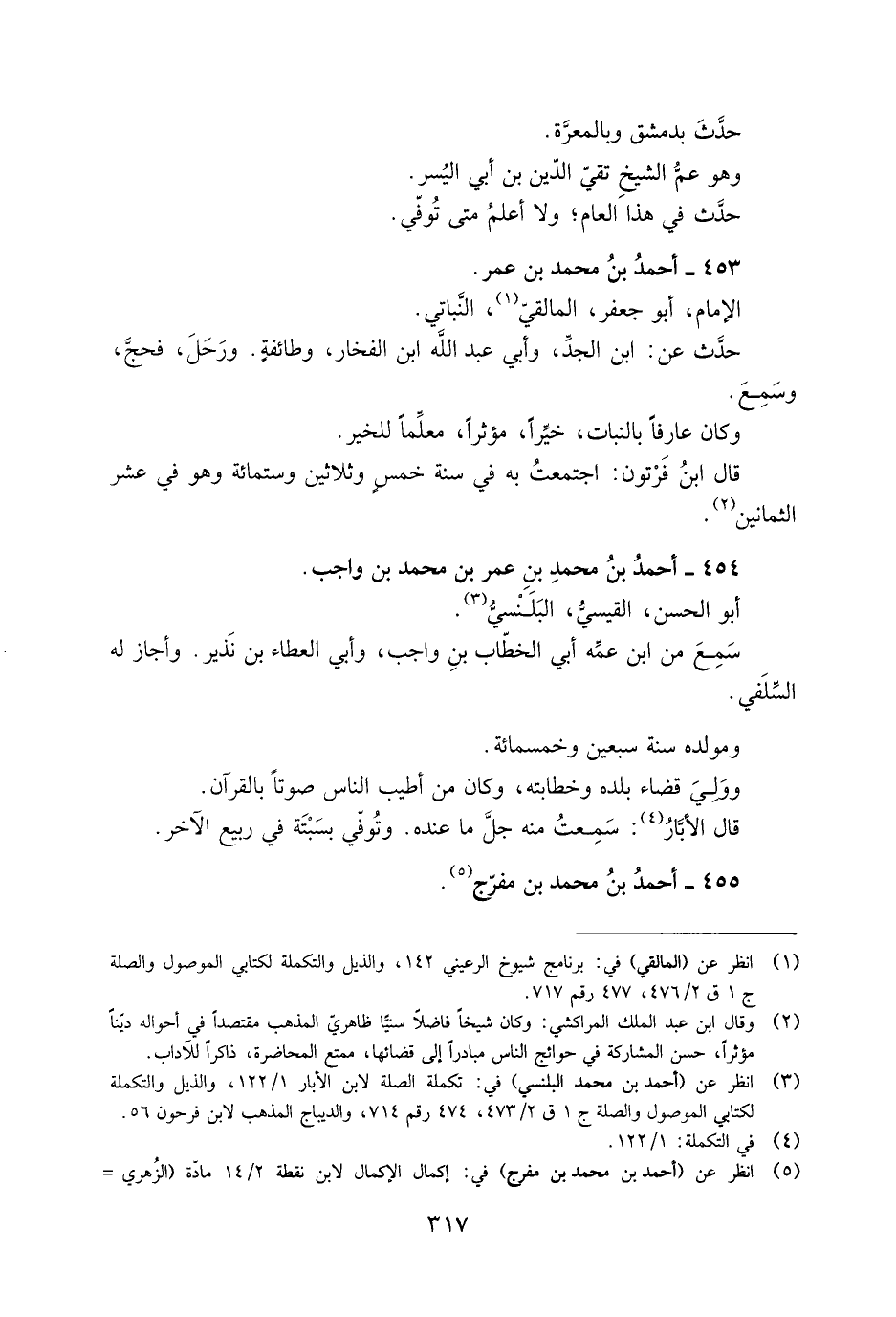 [1] انظر عن (المالقي) في: برنامج شيوخ الرعينيّ 142، والذيل والتكملة لكتابي الموصول والصلة ج 1 ق 2/ 476، 477 رقم 717.