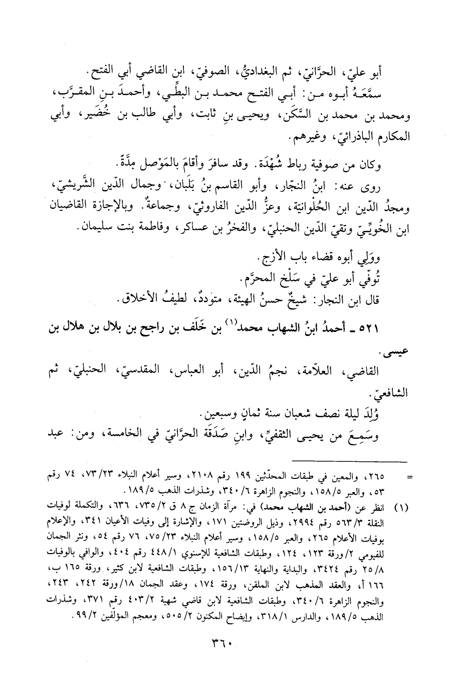 521- أحمد ابن الشهاب مُحَمَّد [1] بْن خَلَف بْن راجح بْن بلال بن هلال بن عيسى.
