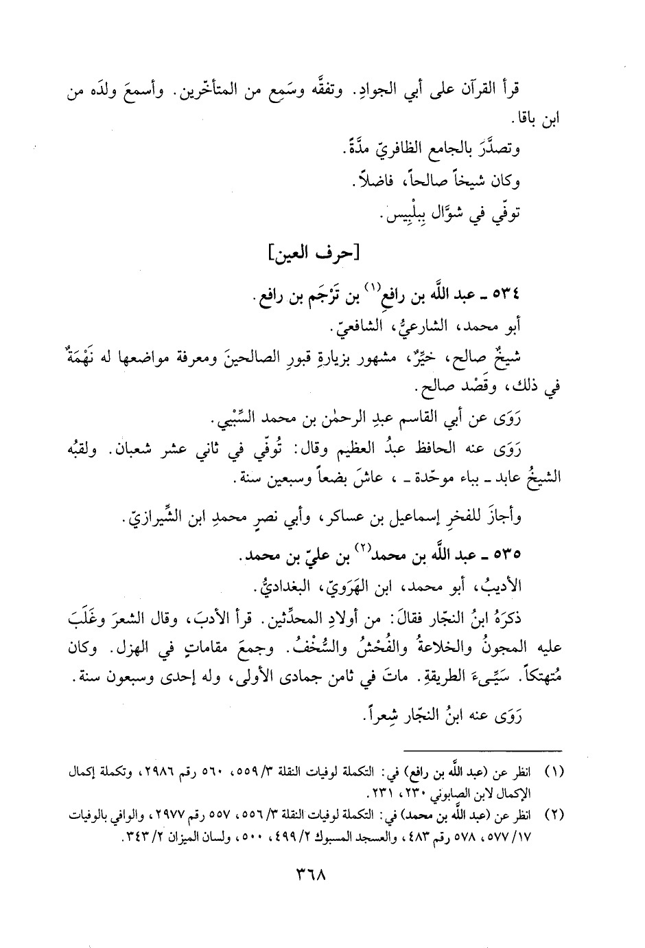 [2] انظر عن (عبد الله بن محمد) في: التكملة لوفيات النقلة 3/ 556، 557 رقم 2977، والوافي بالوفيات 17/ 577، 578 رقم 483، والعسجد المسبوك 2/ 499، 500، ولسان الميزان 2/ 343.