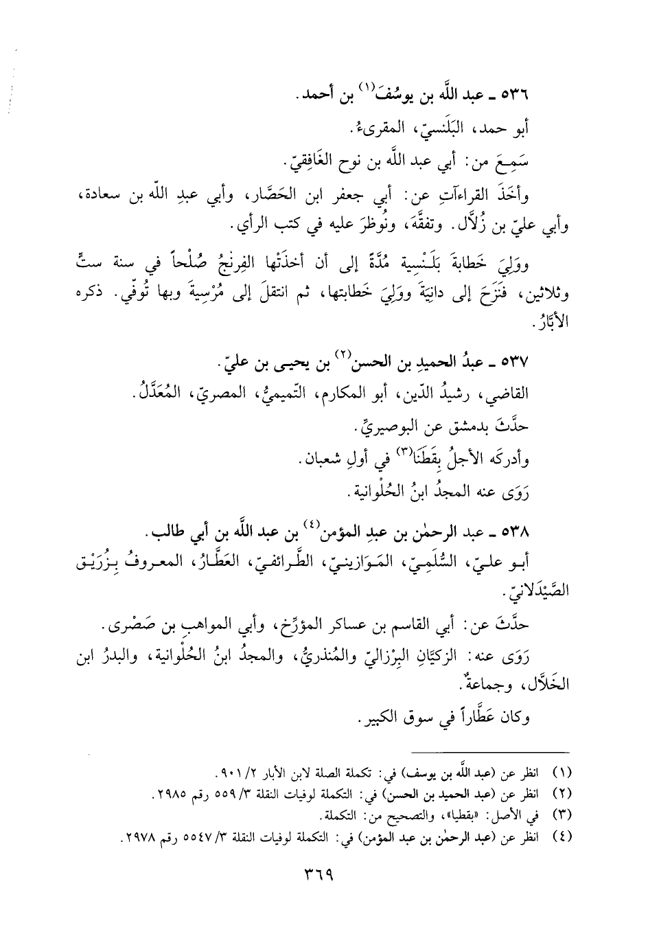 [4] انظر عن (عبد الرحمن بن عبد المؤمن) في: التكملة لوفيات النقلة 3/ 5547 رقم 2978.