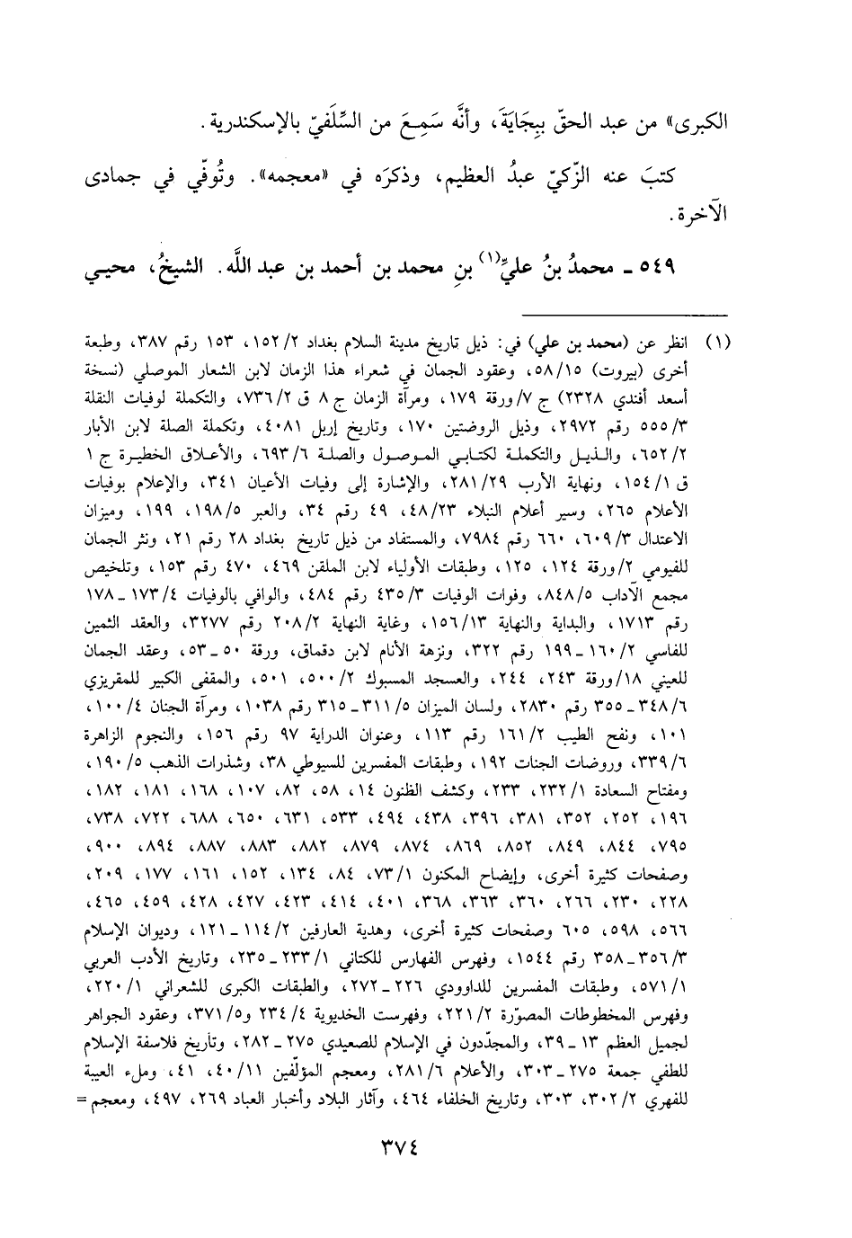 [1] انظر عن (محمد بن علي) في: ذيل تاريخ مدينة السلام بغداد 2/ 152، 153 رقم 387، وطبعة أخرى (بيروت) 15/ 58، وعقود الجمان في شعراء هذا الزمان لابن الشعار الموصلي (نسخة أسعد أفندي 2328) ج 7/ ورقة 179، ومرآة الزمان ج 8 ق 2/ 736، والتكملة لوفيات النقلة 3/ 555 رقم 2972، وذيل الروضتين 170، وتاريخ إربل 4081، وتكملة الصلة لابن الأبار 2/ 652، والذيل والتكملة لكتابي الموصول والصلة 6/ 693، والأعلاق الخطيرة ج 1 ق 1/ 154، ونهاية الأرب 29/ 281، والإشارة إلى وفيات الأعيان 341، والإعلام بوفيات الأعلام 265، وسير أعلام النبلاء 23/ 48، 49 رقم 34، والعبر 5/ 198، 199، وميزان الاعتدال 3/ 609، 660 رقم 7984، والمستفاد من ذيل تاريخ بغداد 28 رقم 21، ونثر الجمان للفيومي 2/ ورقة 124، 125، وطبقات الأولياء لابن الملقن 469، 470 رقم 153، وتلخيص مجمع الآداب 5/ 848، وفوات الوفيات 3/ 435 رقم 484، والوافي بالوفيات 4/ 173- 178 رقم 1713، والبداية والنهاية 13/ 156، وغاية النهاية 2/ 208 رقم 3277، والعقد الثمين للفاسي 2/ 160- 199 رقم 322، ونزهة الأنام لابن دقماق، ورقة 50- 53، وعقد الجمان للعيني 18/ ورقة 243، 244، والعسجد المسبوك 2/ 500، 501، والمقفى الكبير للمقريزي 6/ 348- 355 رقم 2830، ولسان الميزان 5/ 311- 315 رقم 1038، ومرآة الجنان 4/ 100، 101، ونفح الطيب 2/ 161 رقم 113، وعنوان الدراية 97 رقم 156، والنجوم الزاهرة 6/ 339، وروضات الجنات 192، وطبقات المفسرين للسيوطي 38، وشذرات الذهب 5/ 190، ومفتاح السعادة 1/ 232، 233، وكشف الظنون 14، 58، 82، 107، 168، 181، 182، 196، 252، 352، 381، 396، 438، 494، 533، 631، 650، 688، 722، 738، 795، 844، 849، 852، 869، 874، 879، 882، 883، 887، 894، 900، وصفحات كثيرة أخرى، وإيضاح المكنون 1/ 73، 84، 134، 152، 161، 177، 209، 228، 230، 266، 360، 363، 368، 401، 414، 423، 427، 428، 459، 465، 566، 598، 605 وصفحات كثيرة أخرى، وهدية العارفين 2/ 114- 121، وديوان الإسلام 3/ 356- 358 رقم 1544، وفهرس الفهارس للكتاني 1/ 233- 235، وتاريخ الأدب العربيّ 1/ 571، وطبقات المفسرين للداوديّ 226- 272، والطبقات الكبرى للشعراني 1/ 220، وفهرس المخطوطات المصوّرة 2/ 221، وفهرست الخديوية 4/ 234 و 5/ 371، وعقود الجواهر لجميل العظم 13- 39، والمجدّدون في الإسلام للصعيدي 275- 282، وتاريخ فلاسفة الإسلام للطفي جمعة 275- 303، والأعلام 6/ 281، ومعجم المؤلّفين 11/ 40، 41، وملء العيبة للفهري 2/ 302، 303، وتاريخ الخلفاء 464، وآثار البلاد وأخبار العباد 269، 497، ومعجم