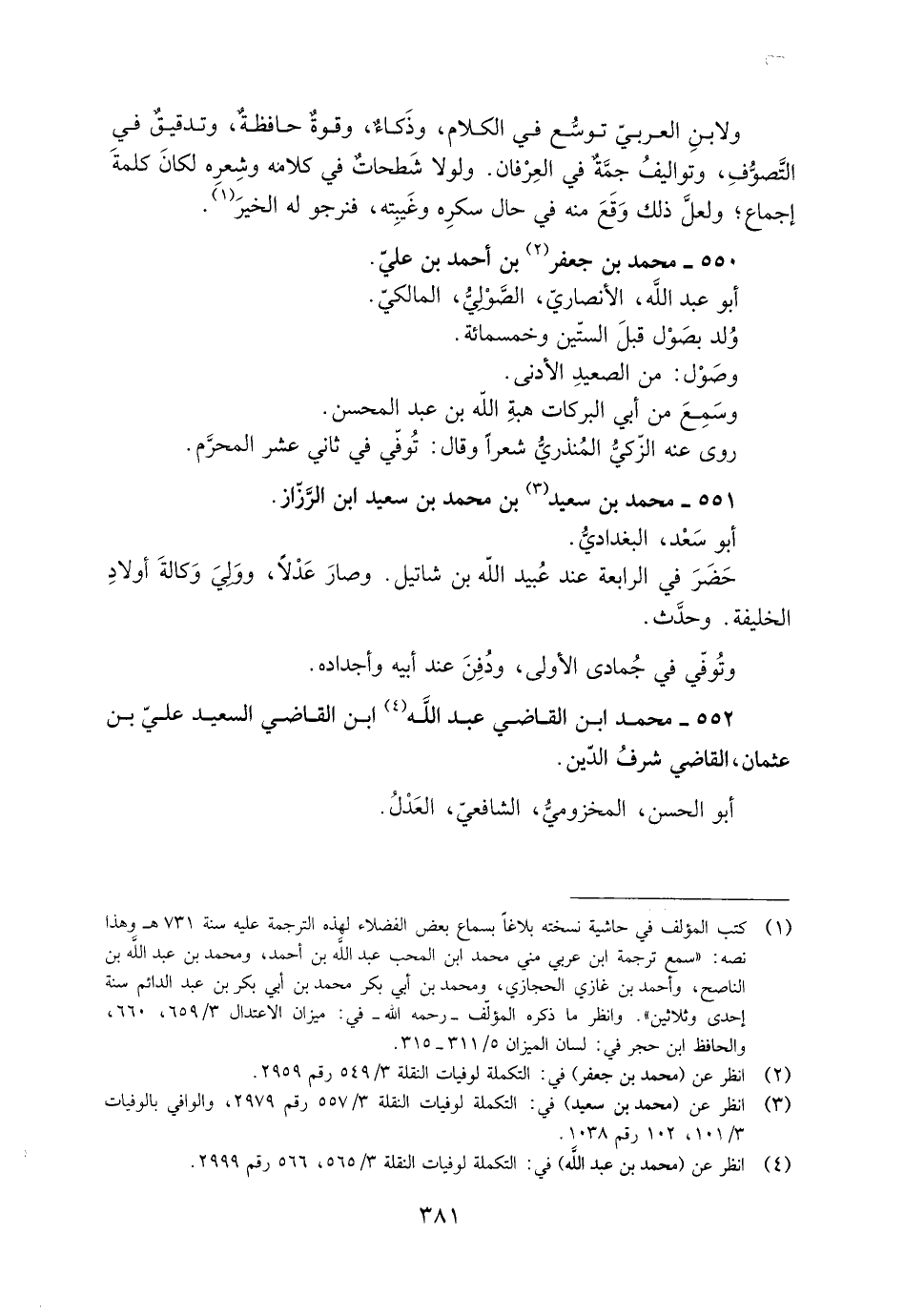 [3] انظر عن (محمد بن سعيد) في: التكملة لوفيات النقلة 3/ 557 رقم 2979، والوافي بالوفيات 3/ 101، 102 رقم 1038.
