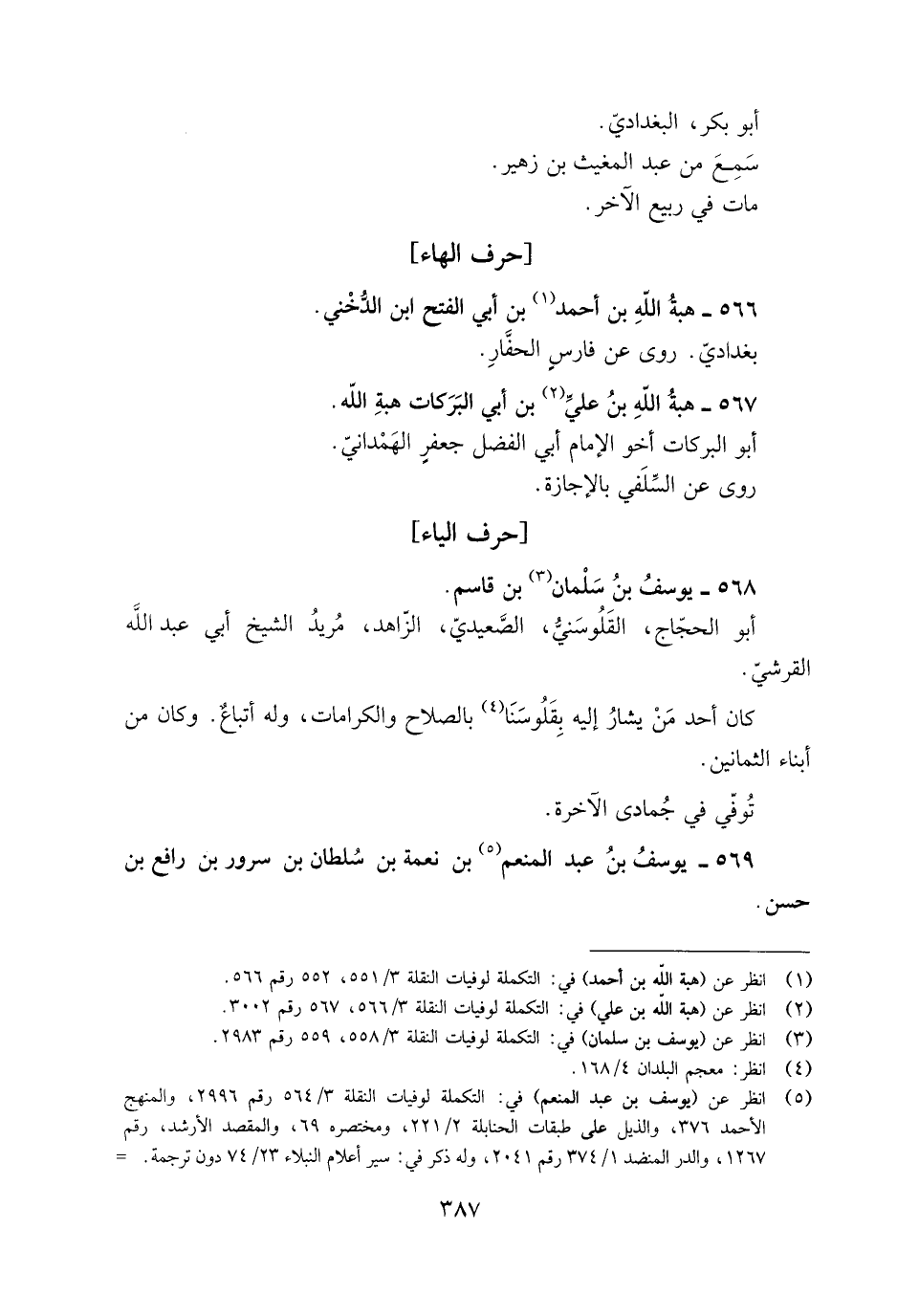 567- هبةُ اللَّه بْن عَلِيّ [2] بْن أَبِي البَرَكات هبةِ اللَّه.