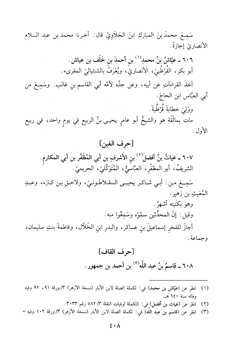 [3] انظر عن (قاسم بن عبد الله) في: تكملة الصلة لابن الأبار 2/ (نسخة الأزهر) 3/ ورقة 102 وفيه