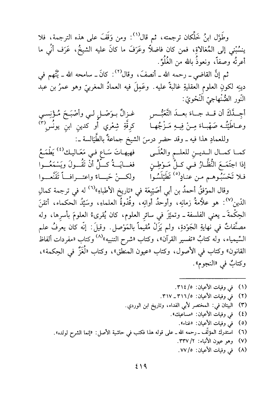 [2] في وفيات الأعيان: 5/ 316- 317.