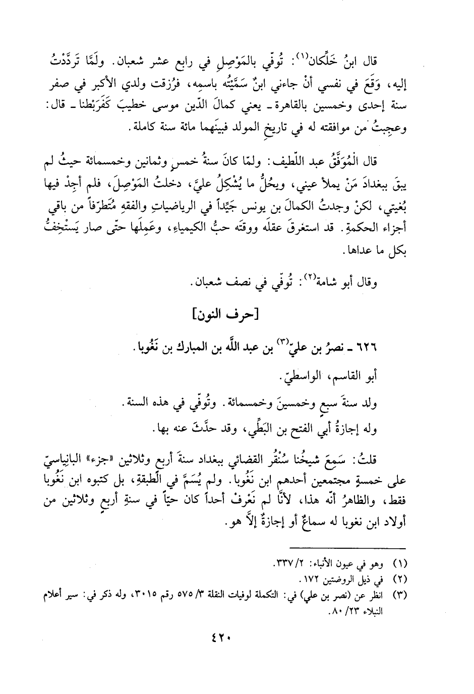 [3] انظر عن (نصر بن علي) في: التكملة لوفيات النقلة 3/ 575 رقم 3015، وله ذكر في: سير أعلام النبلاء 23/ 80.