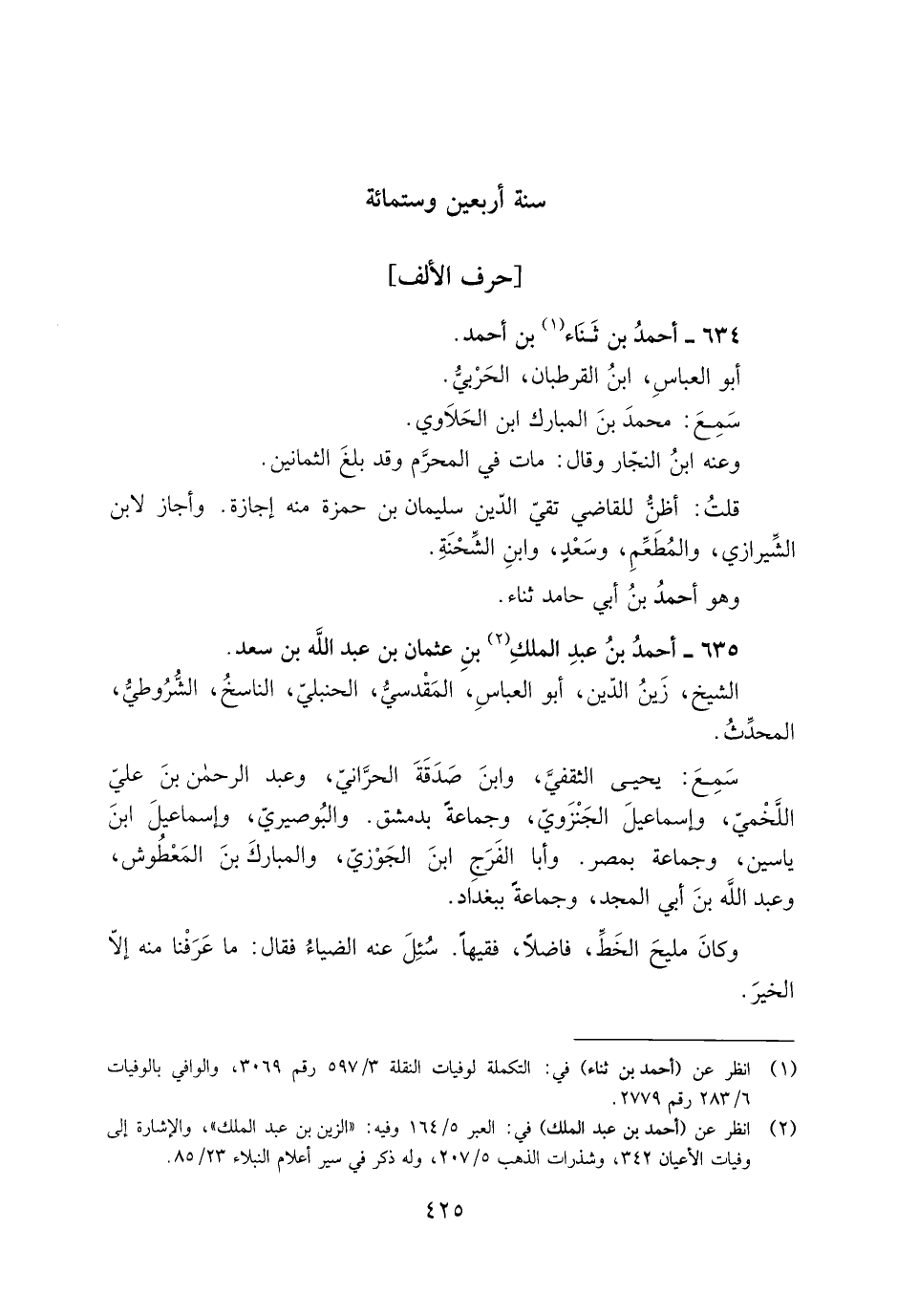 [1] انظر عن (أحمد بن ثناء) في: التكملة لوفيات النقلة 3/ 597 رقم 3069، والوافي بالوفيات 6/ 283 رقم 2779.