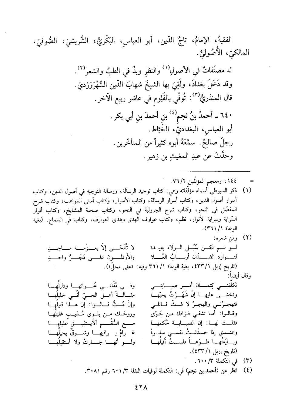 [4] انظر عن (أحمد بن نجم) في: التكملة لوفيات النقلة 3/ 601 رقم 3081.