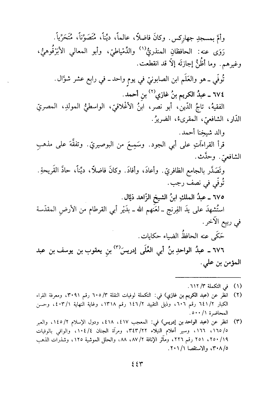 674- عبدُ الكريم بن غازي [2] بن أَحْمَد.