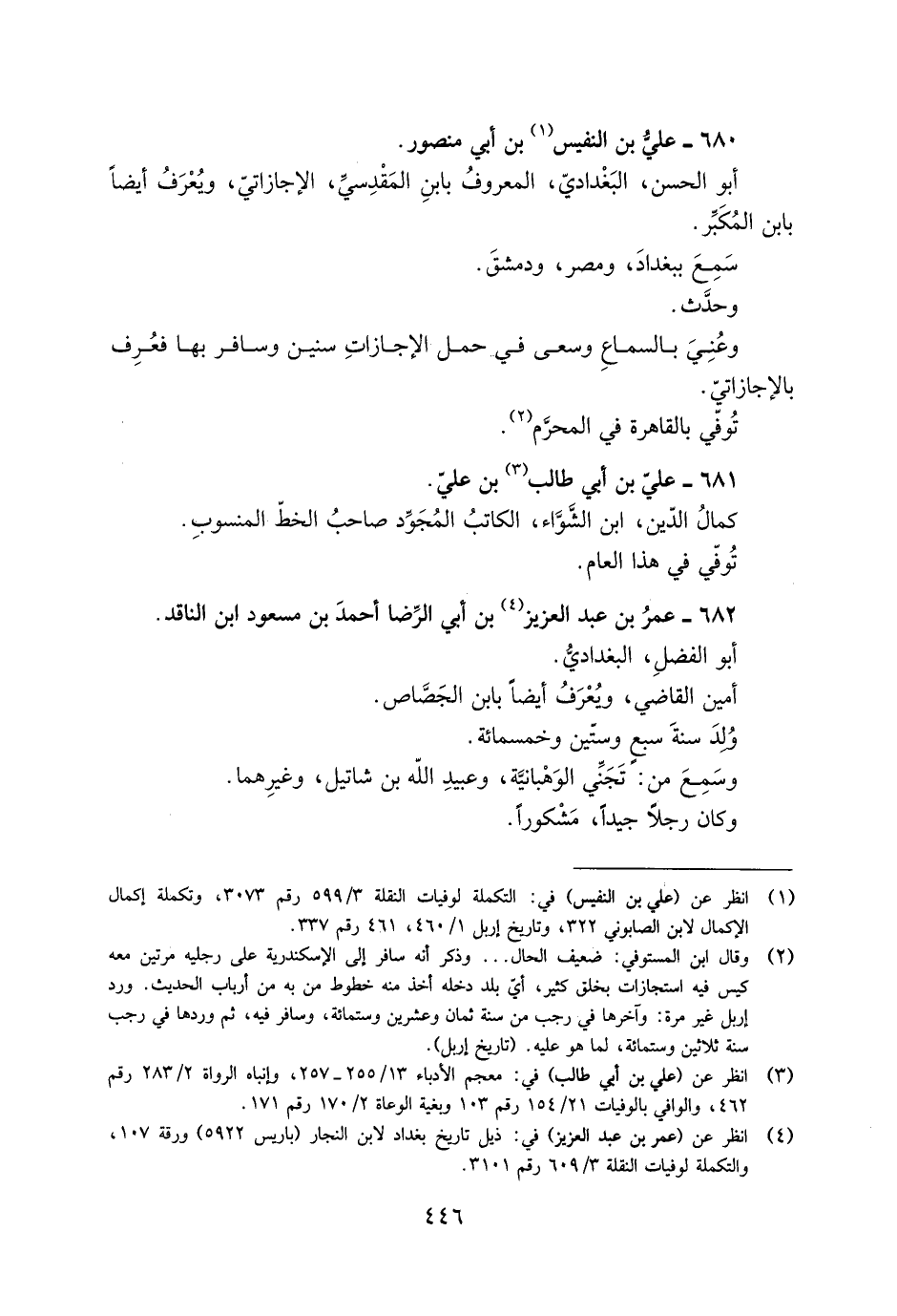 [1] انظر عن (علي بن النفيس) في: التكملة لوفيات النقلة 3/ 599 رقم 3073، وتكملة إكمال الإكمال لابن الصابوني 322، وتاريخ إربل 1/ 460، 461 رقم 337.