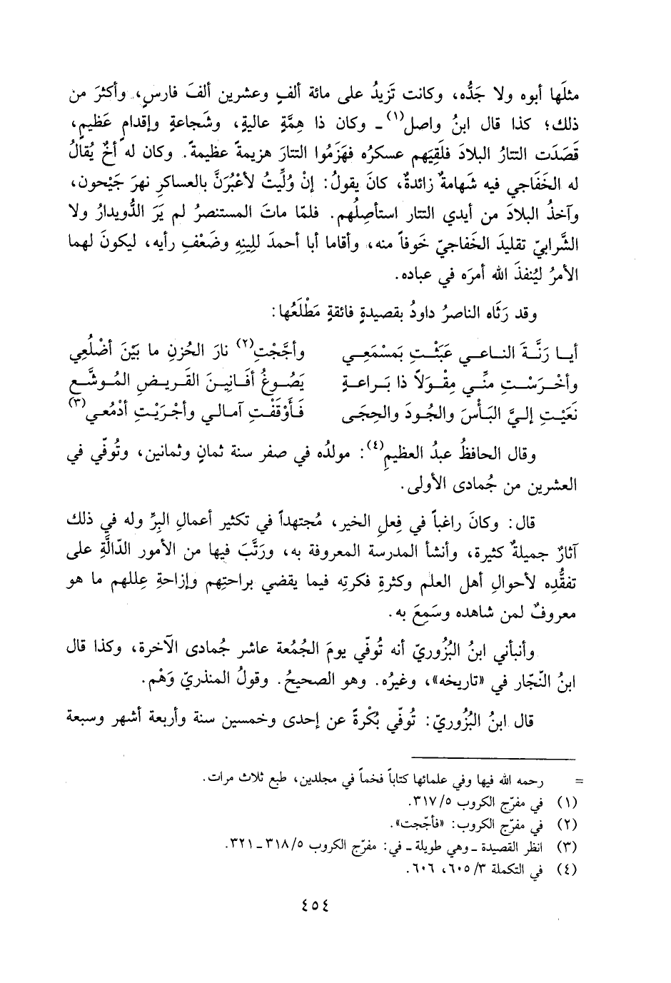 [3] انظر القصيدة- وهي طويلة- في: مفرّج الكروب 5/ 318- 321.