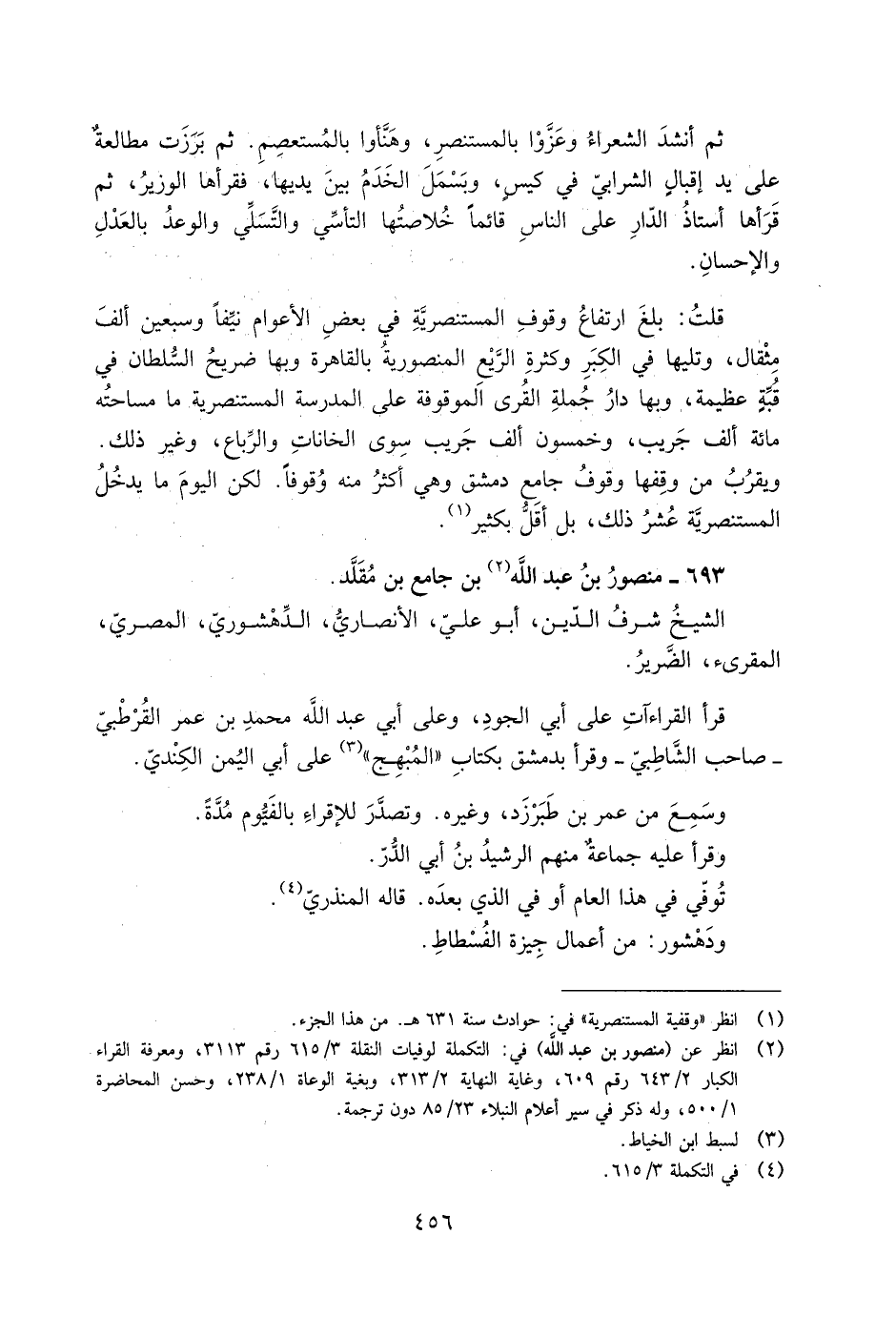 [2] انظر عن (منصور بن عبد الله) في: التكملة لوفيات النقلة 3/ 615 رقم 3113، ومعرفة القراء الكبار 2/ 643 رقم 609، وغاية النهاية 2/ 313، وبغية الوعاة 1/ 238، وحسن المحاضرة 1/ 500، وله ذكر في سير أعلام النبلاء 23/ 85 دون ترجمة.