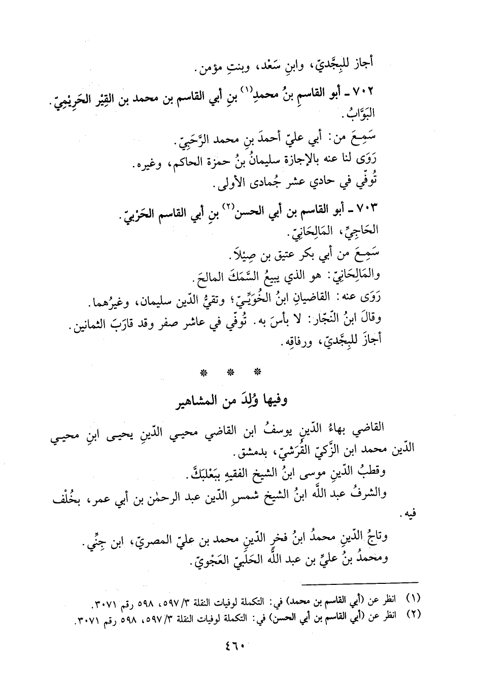 702- أَبُو القاسم بْن مُحَمَّد [1] بْن أبي القَاسِم بْن مُحَمَّد بن القِير الحَرِيميّ.