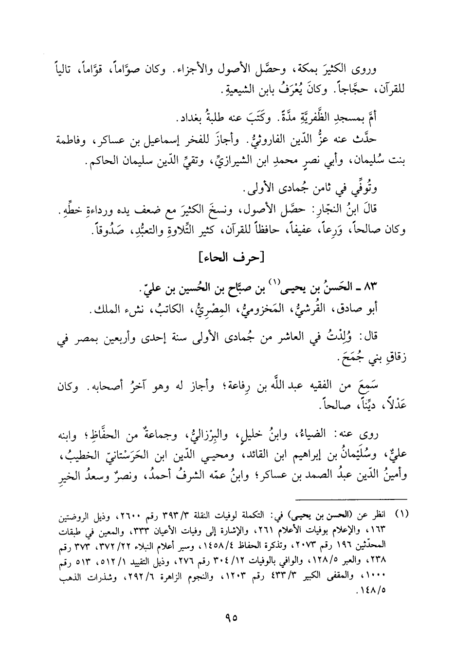 83- الحسنُ بْن يحيى [1] بْن صبّاح بْن الْحُسَيْن بْن عَلِيّ.
