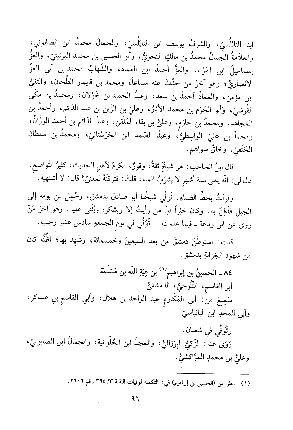 84- الْحُسَيْن بْن إِبْرَاهِيم [1] بْن هبة اللَّه بْن مَسْلَمَة.