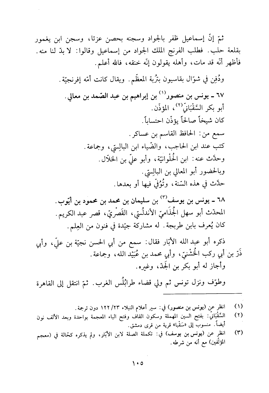 67- يونس بْن منصور [1] بْن إِبْرَاهِيم بْن عَبْد الصّمد بْن معالي.