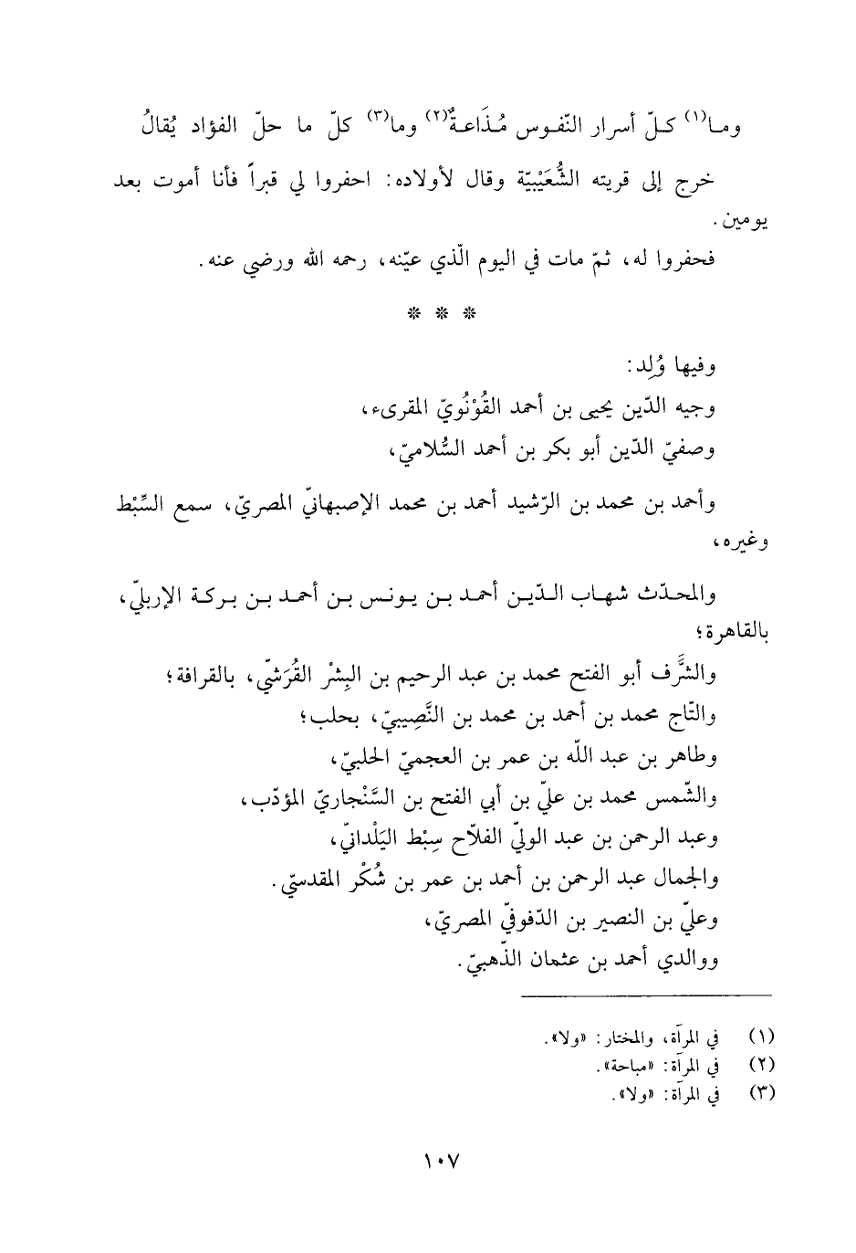 وما [1] كلّ أسرار النّفوس مُذَاعةٌ [2] وما [3] كلّ ما حلّ الفؤاد يُقالُ خرج إلى قريته الشُّعَيْبيّة وقال لأولاده: احفروا لي قبرا فأنا أموت بعد يومين.