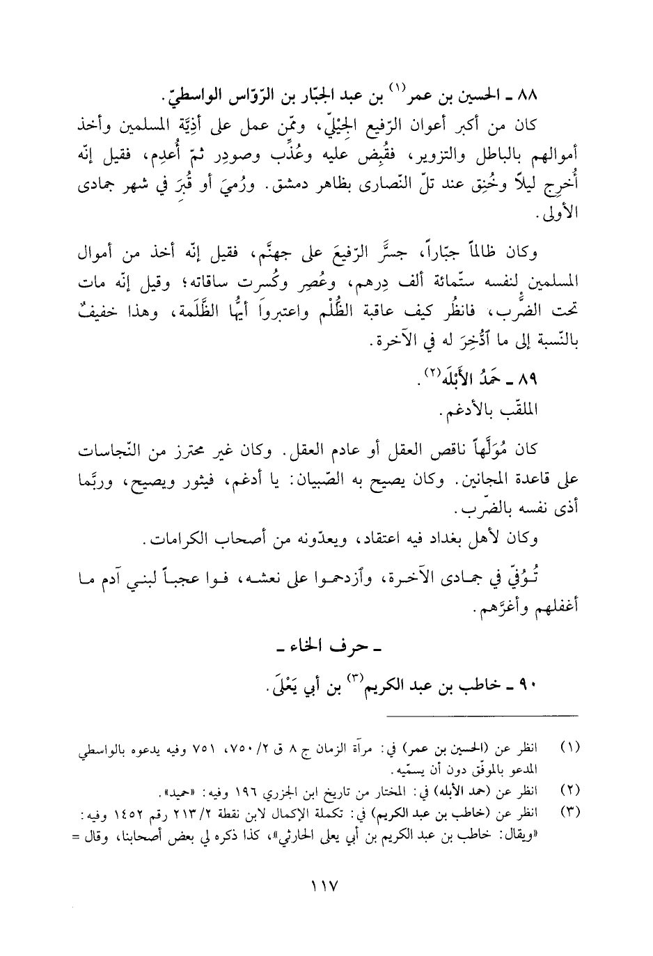 [1] انظر عن (الحسين بن عمر) في: مرآة الزمان ج 8 ق 2/ 750، 751 وفيه يدعوه بالواسطي المدعو بالموفّق دون أن يسمّيه.