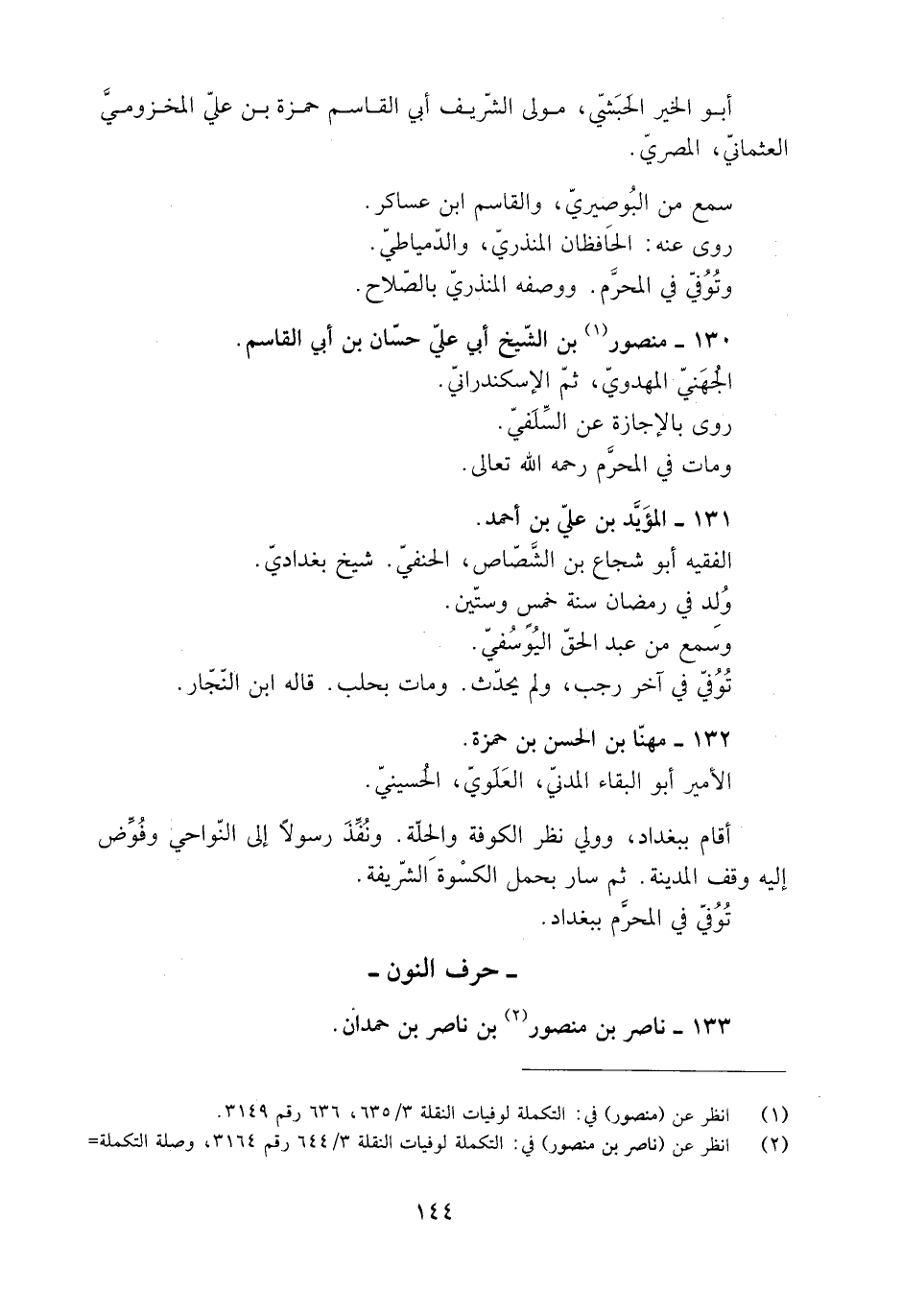 133- ناصر بْن منصور [2] بْن ناصر بْن حمدان.