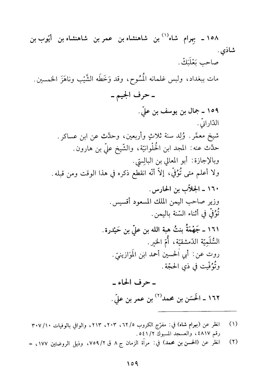 161- جَهْمَةُ بِنْتُ هبة اللَّه بْن عَلِيّ بْن حَيْدرة.