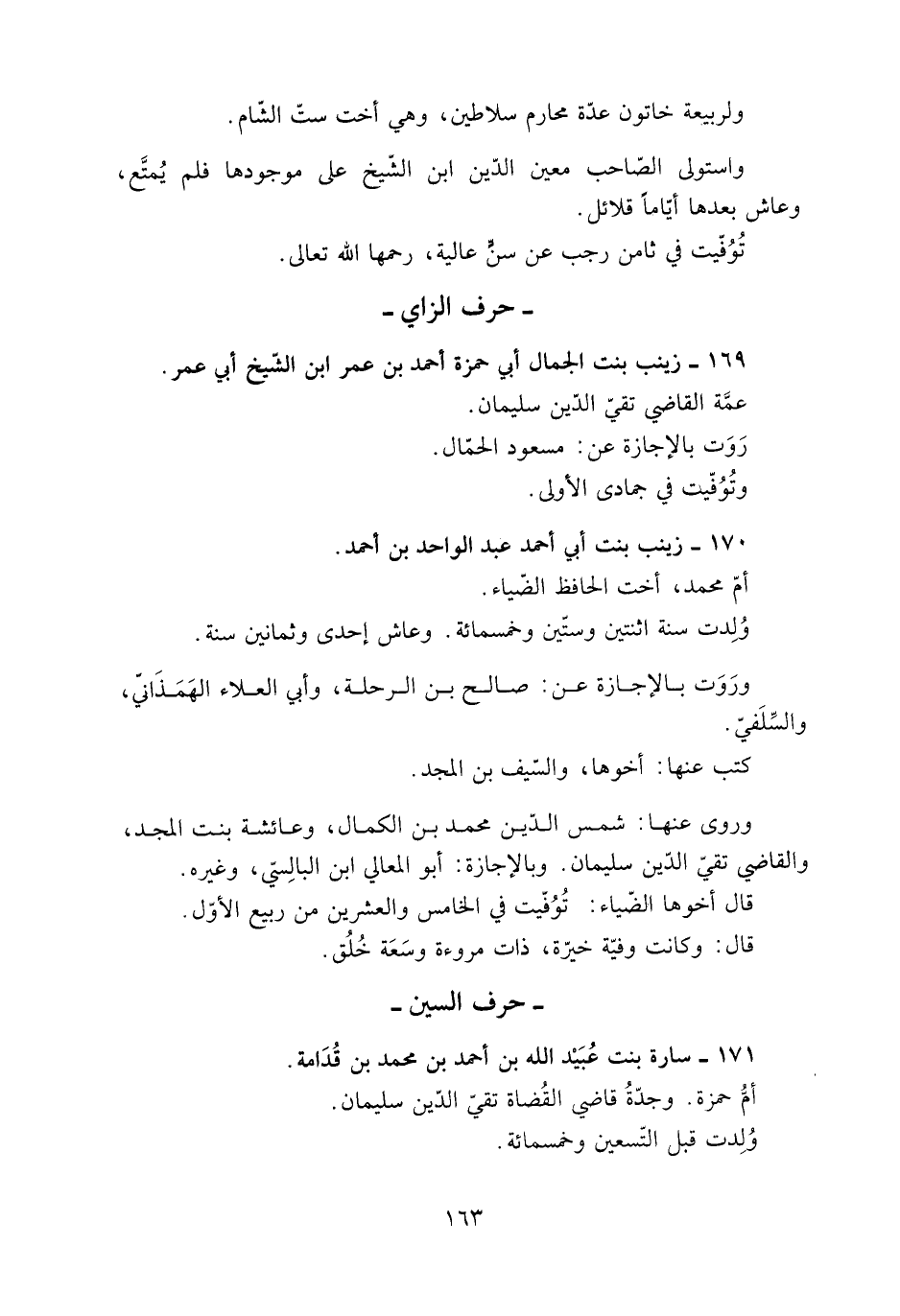 169- زينب بِنْت الجمال أَبِي حمزة أَحْمَد بْن عُمَر ابن الشَّيْخ أَبِي عُمَر.