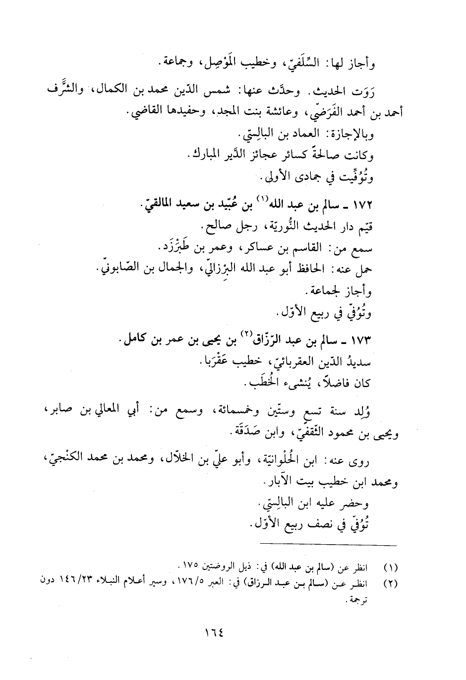 173- سالم بْن عَبْد الرّزّاق [2] بْن يحيى بْن عُمَر بْن كامل.
