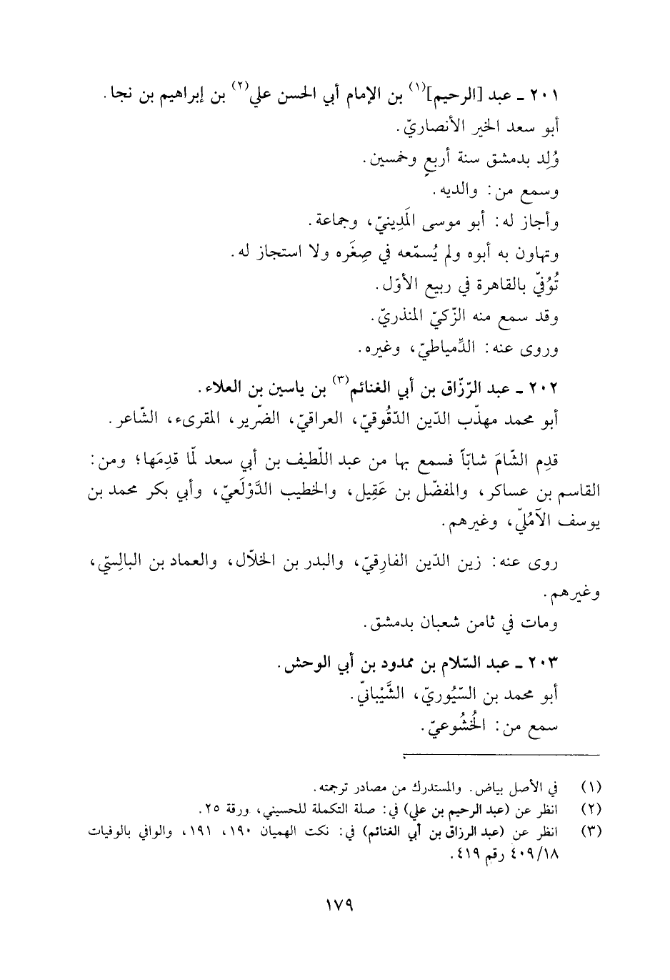 201- عَبْد [الرحيم] [1] بْن الإِمَام أَبِي الْحَسَن عَلِيّ [2] بْن إِبْرَاهِيم بْن نجا.