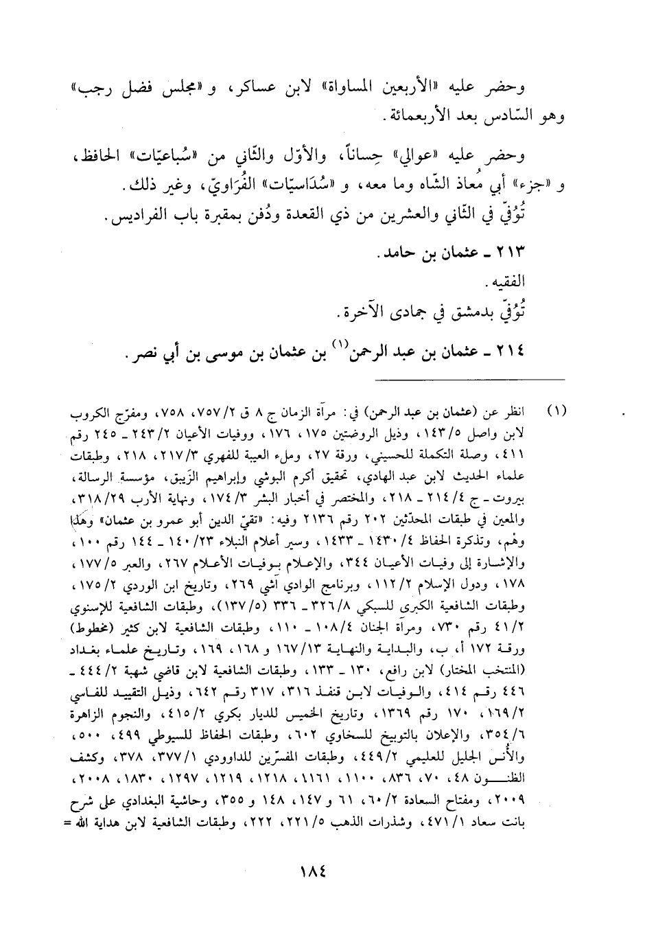 214- عثمان بْن عَبْد الرَّحْمَن [1] بْن عُثْمَان بن مُوسى بن أبي نصر.