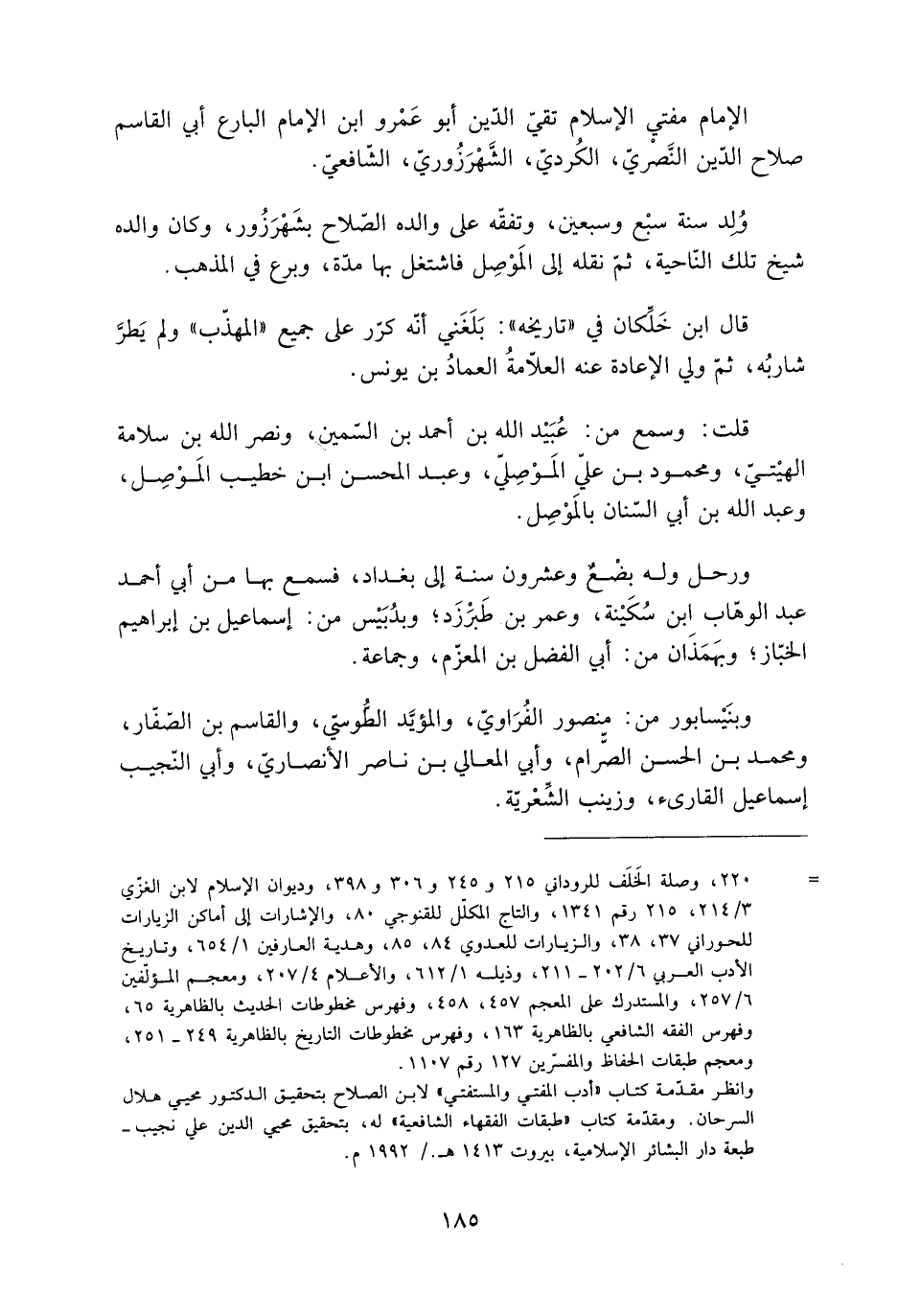 وانظر مقدّمة كتاب «أدب المفتي والمستفتي» لابن الصلاح بتحقيق الدكتور محيي هلال السرحان. ومقدّمة كتاب «طبقات الفقهاء الشافعية» له، بتحقيق محيي الدين علي نجيب- طبعة دار البشائر الإسلامية، بيروت 1413 هـ. / 1992 م.