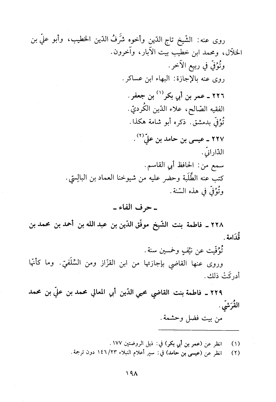 228- فاطمة بِنْت الشَّيْخ موفّق الدّين بْن عَبْد اللَّه بْن أَحْمَد بْن مُحَمَّد بْن قُدَامة.