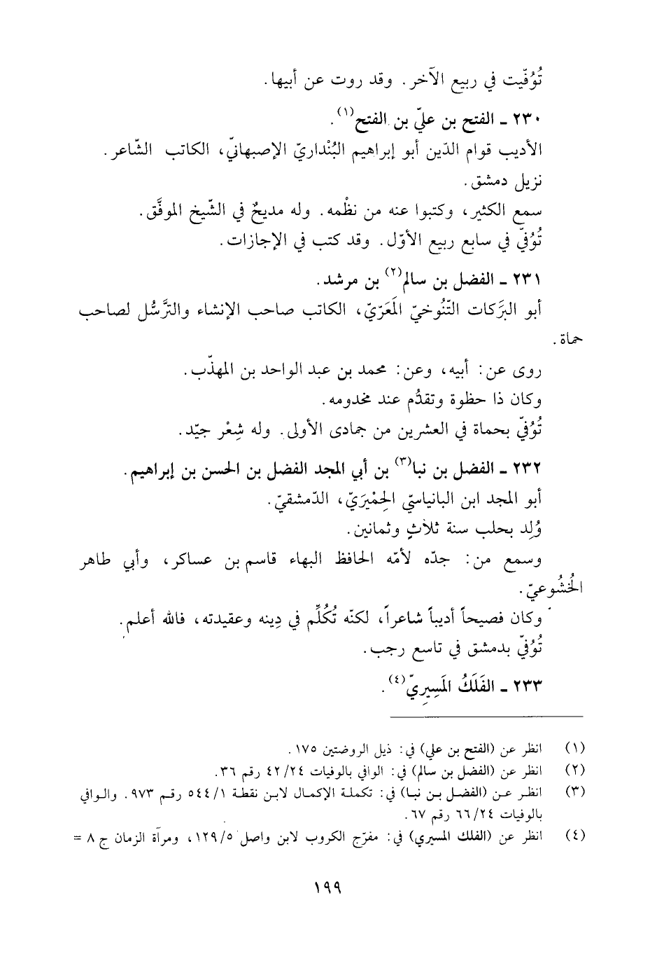 [1] انظر عن (الفتح بن علي) في: ذيل الروضتين 175.