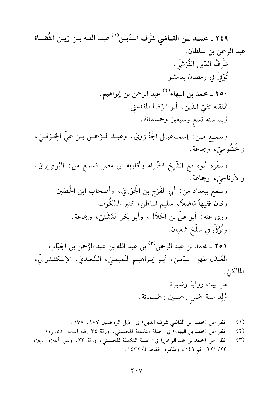 249- مُحَمَّد بْن القاضي شَرَف الدّين [1] عَبْد اللَّه بْن زين القُضاة عَبْد الرَّحْمَن بْن سلطان.