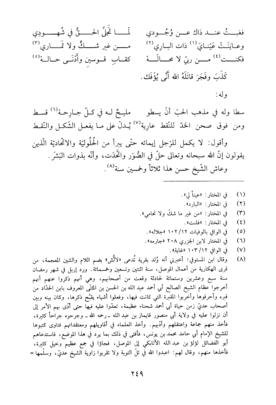 فغبتُ عند ذاك عَن وُجُودي ... لمّا تَجَلَّى الحقُّ فِي شُهودِي