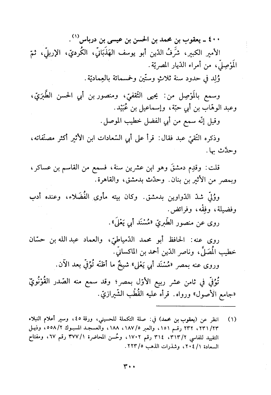 400- يعقوب بْن مُحَمَّد بْن الْحَسَن بْن عيسى بْن درباس [1] .