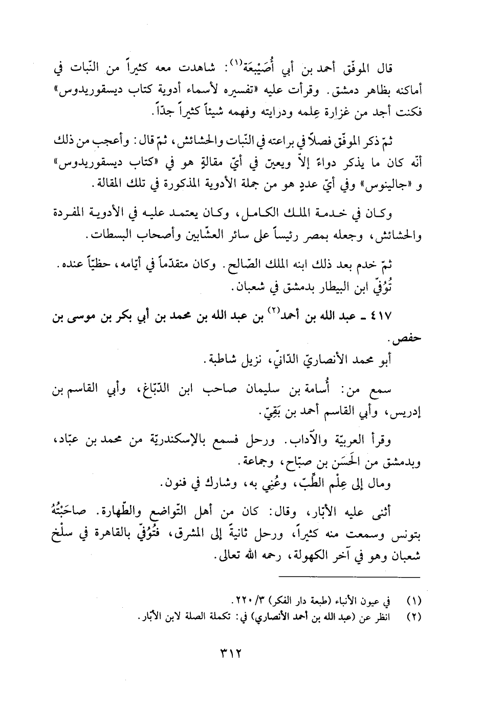 [1] في عيون الأنباء (طبعة دار الفكر) 3/ 220.