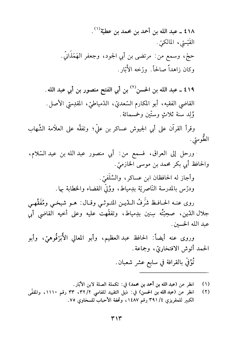419- عَبْد اللَّه بْن الْحَسَن [2] بْن أَبِي الفتح منصور بْن أَبِي عَبْد اللَّه.