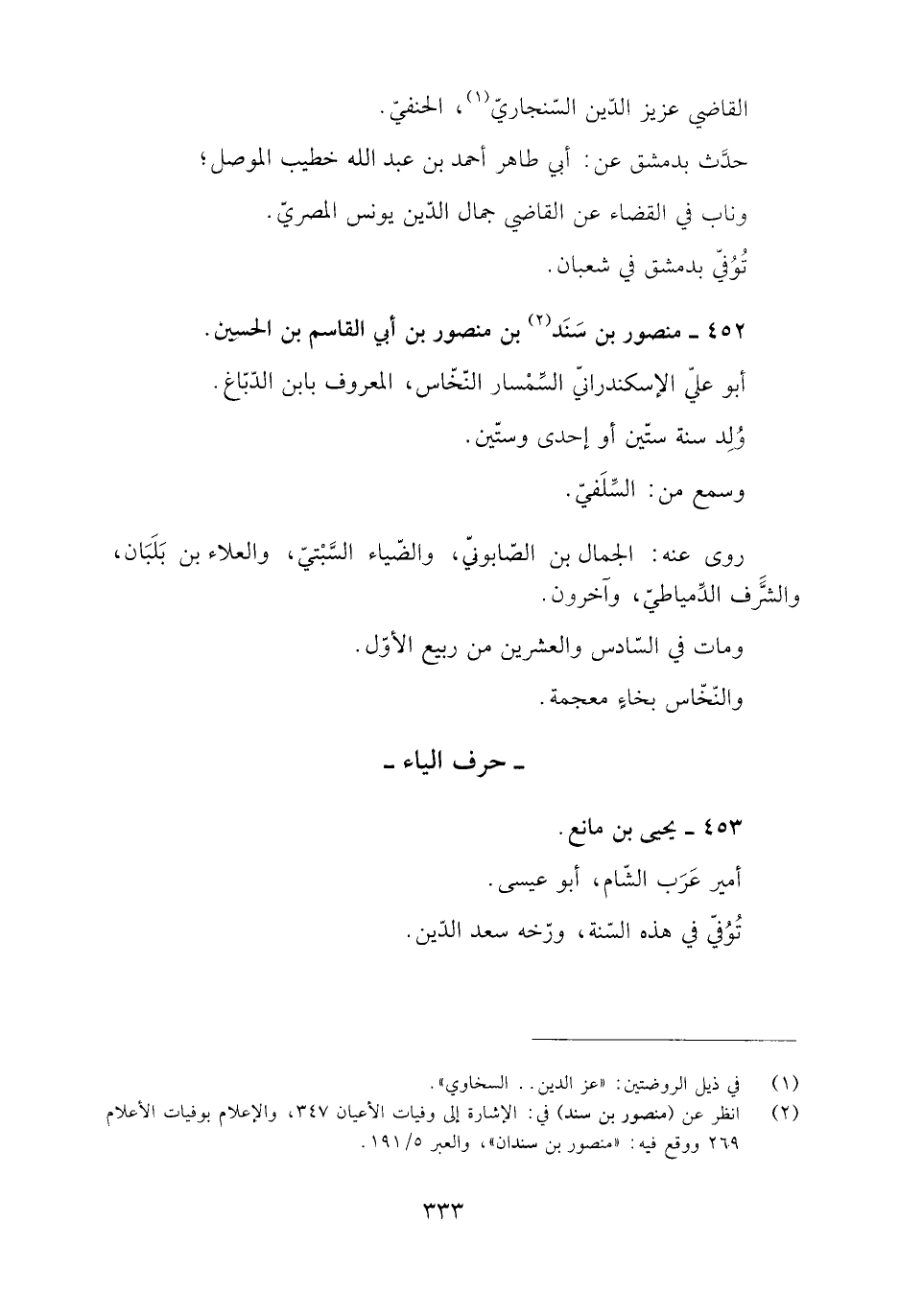 [2] انظر عن (منصور بن سند) في: الإشارة إلى وفيات الأعيان 347، والإعلام بوفيات الأعلام 269 ووقع فيه: «منصور بن سندان» ، والعبر 5/ 191.