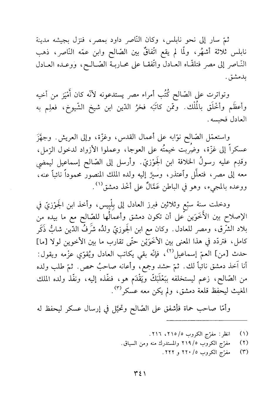 وأمّا صاحب حماة فأشفق عَلَى الصّالح وتحيّل في إرسال عسكر ليحفظ له