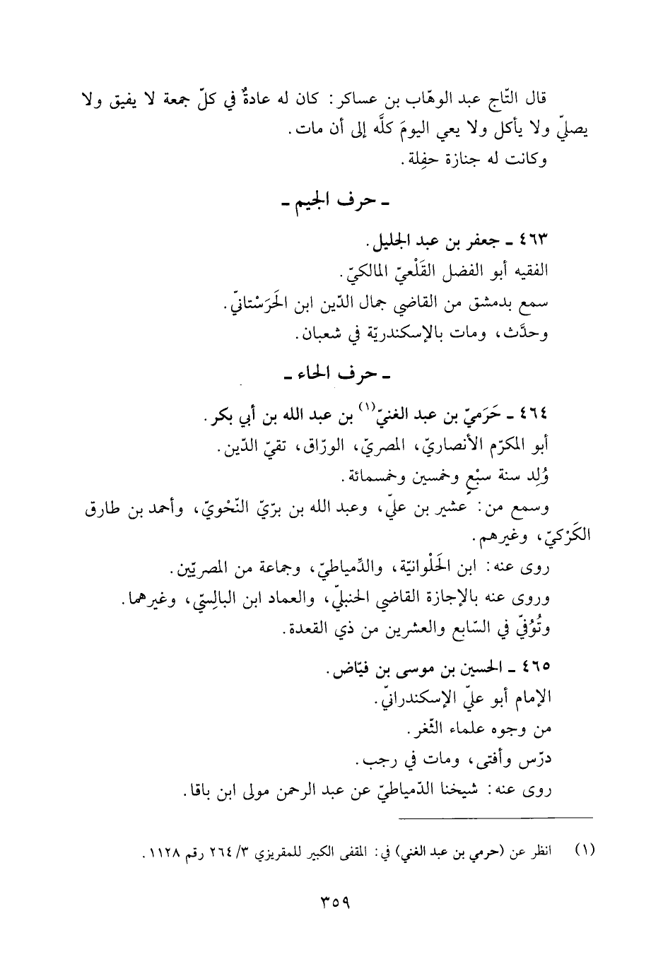 [1] انظر عن (حرمي بن عبد الغني) في: المقفى الكبير للمقريزي 3/ 264 رقم 1128.