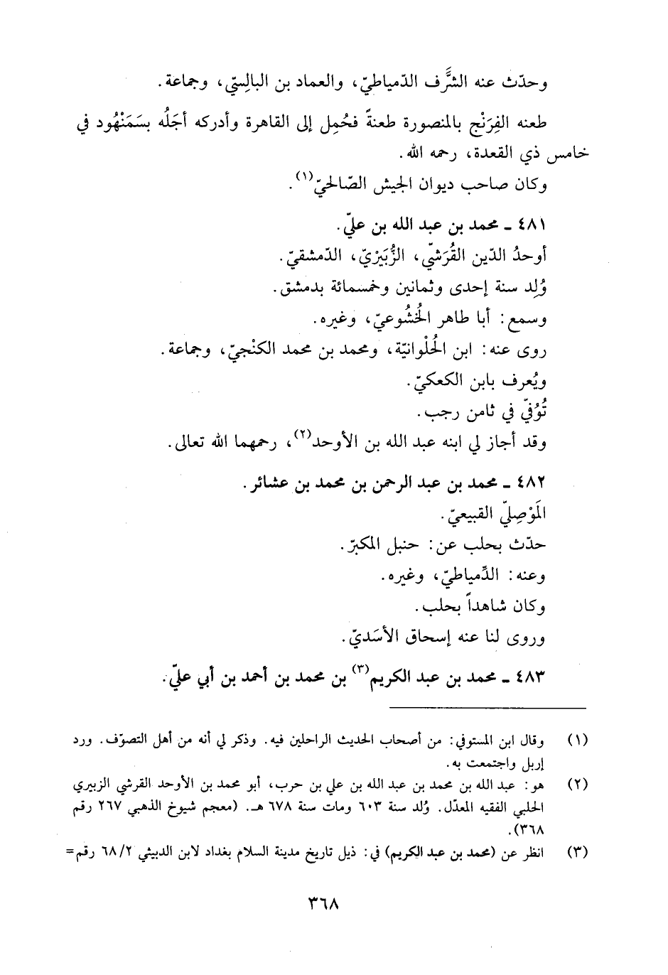 [3] انظر عن (محمد بن عبد الكريم) في: ذيل تاريخ مدينة السلام بغداد لابن الدبيثي 2/ 68 رقم